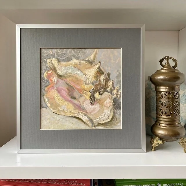 “Ocean Shell Study 1”. Oil | Mat Cardboard.